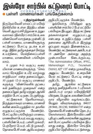 இஸ்ரோ சார்பில் கட்டுரை போட்டி பள்ளி மாணவர்கள் பங்கேற்கலாம்.